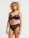 Inspired by 17th-century design and finished with imitation metallic weaving, this bra blends heritage with modern edge. A hidden elastic inside the lining offers enhanced comfort, while a cotton yoke supports and shapes the bust without unwanted separation.