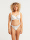 Inspired by lunar reverberations, it’s both striking and refined, with subtle lurex highlights. A jewel with the LB logo sits between the cups for an elegant finish.